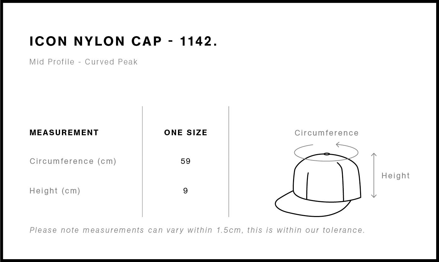 The Icon Nylon Cap is a mid-profile, six-panel snapback made from 100% recycled nylon. Features a curved peak, quick-dry fabric, tonal under-peak, and tear-out label.