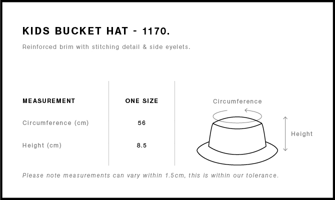 Discover comfort and style with the AS Colour Kids Bucket Hat. Crafted from 100% cotton, this light-mid weight hat features a reinforced brim, side eyelets, and a tear-out label for added convenience. Perfectly sized for young adventurers.