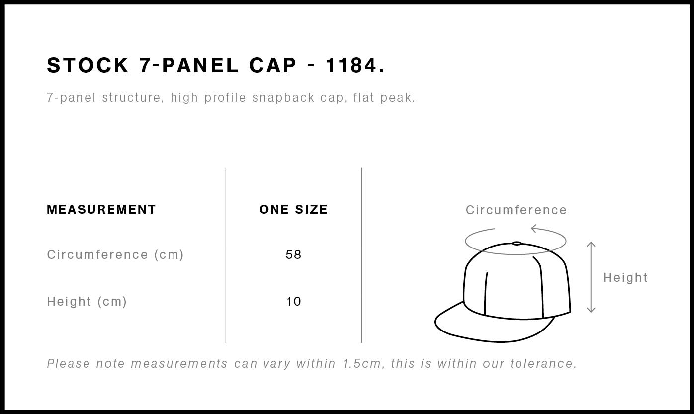 Introducing the Stock 7-Panel Cap: An evolution of our original Stock Cap with a 7-panel structure. High-profile snapback cap with a flat peak, crafted from mid-weight 100% cotton. Features include a plastic snapback closure, tonal under-peak lining, stitching eyelets for ventilation, and a self-fabric dome at the top. One size fits all.