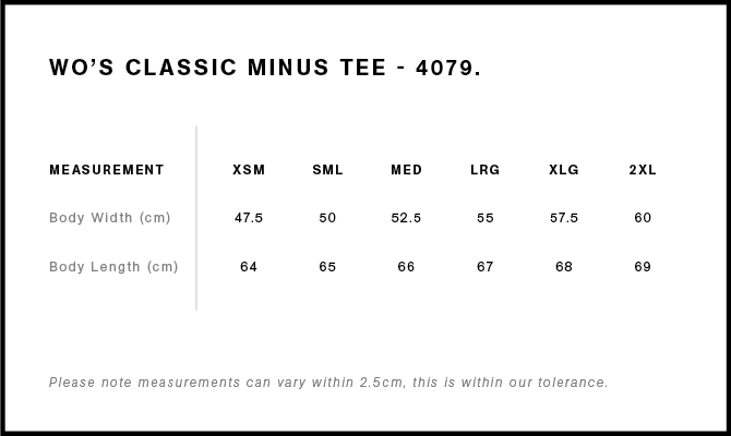 Construction - Shorter body roughly 5cm shorter than our standard Classic Tee. Neck ribbing, side seamed, shoulder to shoulder tape, double needle hems, preshrunk to minimise shrinkage
