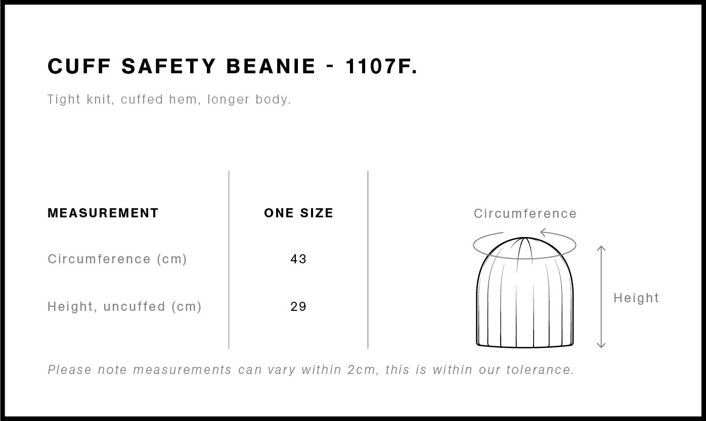 Introducing the AS Colour Cuff Safety Beanie, expertly crafted from mid-weight 100% acrylic with a tight knit for durability. Featuring a relaxed style with a cuffed hem and longer body, it offers comfort and high visibility. One size fits all.